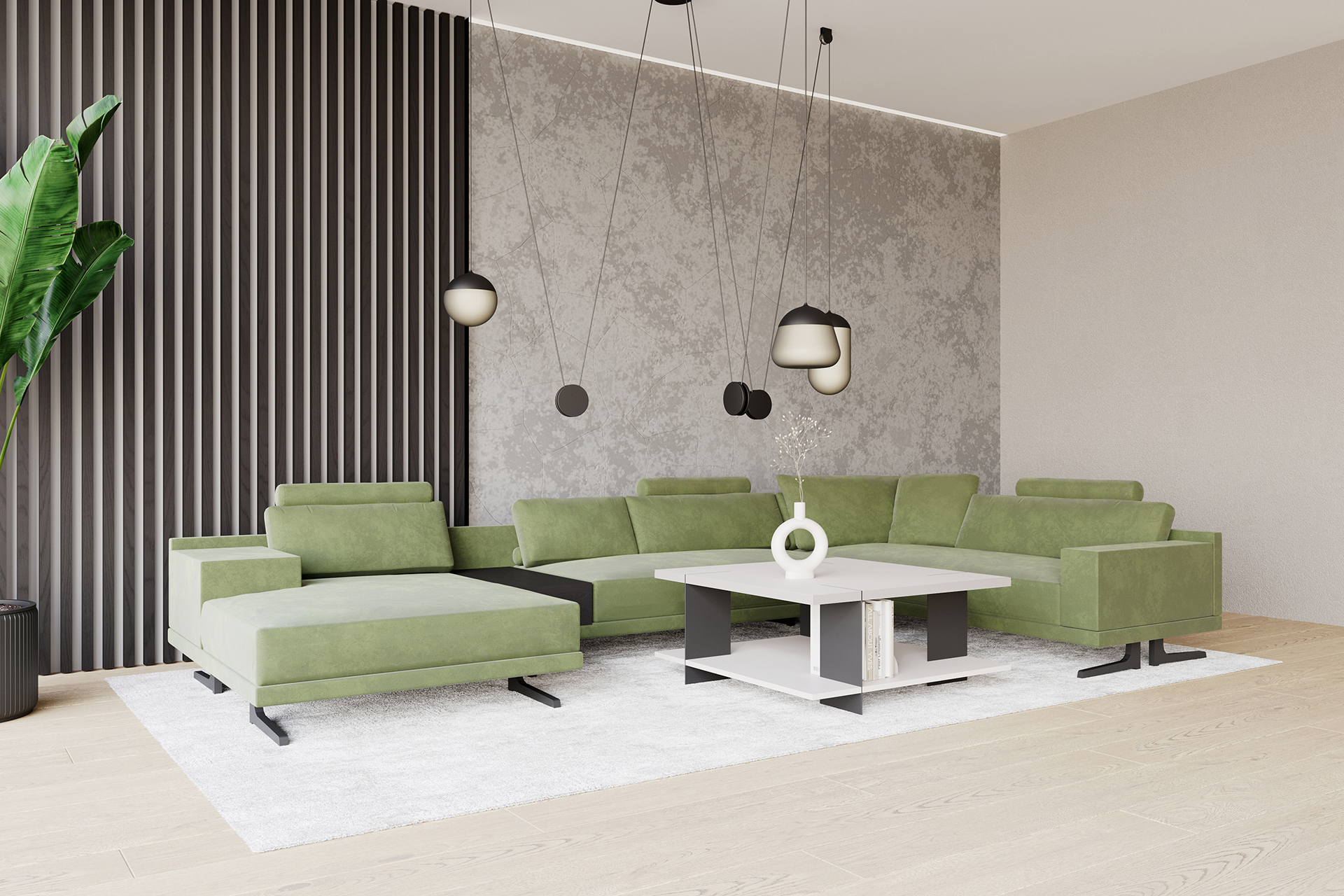 stolku nabízí úložné místo pro dekorační předměty nebo knihy.