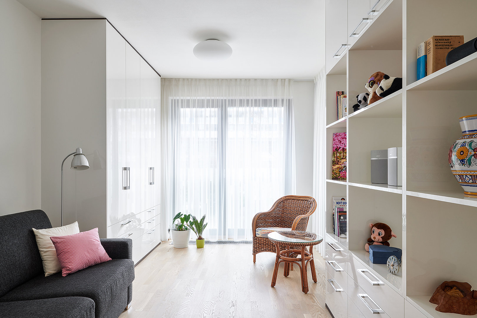 Šatní skříně v interiéru v oblíbené kombinaci laku a dýze